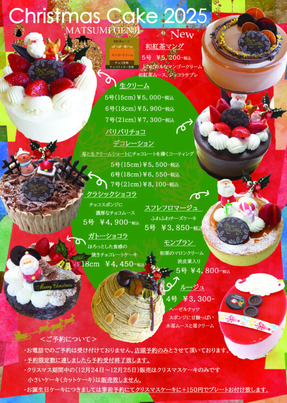 ・クリスマスケーキは前払い制ですので店頭受付のみとさせて頂いております(お電話では承れません)